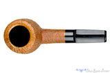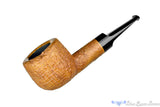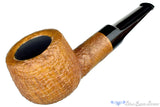 Light enough to clench and only five inches long, this saddled tan blasted pot from American carver, Joe Hinkle, is a deceptively large and slick composition of briar and brindle. Difficult to see in the pictures is the subtle black and dark grey brindle that only reveals its patterns when the pipe is within about a foot and a half from the eyes. A very nice touch of understated refinement on a pot that carries a tremendously large chamber. Perfectly drilled with a masterfully engineered slot that can keep such a magnificent vessel alight for as long as a smoker likes, this blonde beauty of stout lines and compelling draw will be a boon for any large leaf blend enthusiast.