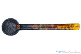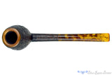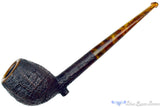With a long and classically tapered shank and stem, this sandblasted cutty from American carver, Joe Hinkle, erupts in a gorgeously shaped bowl of rounded curves capped by a smooth and rounded rim. Perfectly balanced to sit on the post underneath the transition, this very nice blast features growth rings in a dense pattern revealing that this burl grew very slowly over a long time before being harvested and turned by hand into this marvelous instrument of turning tobacco into a tasty triumph. Stemmed in tortoise shell, this sweet spot sized chamber of cylindrical design is well drilled with a draft that has been slotted deep into the stem to guarantee a phenomenal smoker no matter what tobacco is preferred.