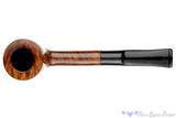 We don't know much about Jens Erik and haven't seen much of his work. Evidently he was once a hobbyist who started his own wine and pipe shop and has worked with other professionals from Denmark, where this smooth was originally sold. It is handmade and has almost no cant to the bowl and the thick walled dublin bowl is covered in cross-grained birdseye with no muddling as is often seen in amateur work. The chamber is just wide enough to take a Balkan or English blend, but the smooth draw will certainly cooperate with a Virginia or burley as well. There is some modest darkening across the rim and some wear at the inner rim, though this very lightweight clencher is still in outstanding condition.