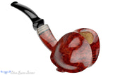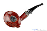 By no means is this the first blowfish Marinko of MPipes has ever created, but it is undoubtedly one of his finest. Twisting back and forth with a curved stem and adorned with fordite, this red finished smooth briar also features a post on which it can rest. Oriented with a patch of plateau on the cheek of the bowl, this curvy offering even has a diamond shank and matching flare in the stem. But like all of Marinko's pipes, the star of this show is the fine tuning of the draw, which every great pipe collector knows is the mark of a favorite generational smoker.