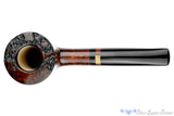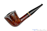 Dense with straight grain and a smooth finish of marvelously rich burgundy tones, this tapered and thick walled dublin from MPipes is about as traditional as we've seen Marinko's work get. Capped with plateau polished into the rim, this muscular briar has a full sized chamber free of any bowl coat and a sublime draw that demands the finest tobacco available for bowl after bowl of dry, sweet smoking. We're not sure what the adornment set into the stem is, echoes the tone of the wood with a nod to the well suited colored tones. An outstanding smoker waiting to be recognized for more than its good looks.