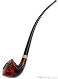 This handmade chruchwarden from MPipes is almost eleven inches long and doubly impressive for the hand cut stem of such a considerable length. The bowl has been carved with a dual toned finish and the rim holds a large patch of well placed, polished plateau. We particularly like the inner bevel that has already been pre-darkened and the grey tones of the wood trim. Lined in the mortise with delrin, this long stemmed beauty of function and form will always form a snug fit. Perfect for a burley or aromatic, this palm friendly smoker will make for an impressive addition to any enthusiasts collection.