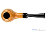 Beautifully oriented with straight grain running all the way around the stummel, this smooth and pale natural racing tomato from Indiana carver, Nate King, already has a bulging cheek line, but the grain seems to accentuate the effect, just like a ripened tomato. The lift of the chin helps capture the packed birdseye along the bottom and the minimal crown saddle and pinched whale's tale button ensures a balance in the composition and a comfortable clench for those who prefer an exceptional smoking vessel. Wide enough in the chamber for a broad cut or tongue friendly blend, this exceptional and heirloom American handmade is also just deep enough for a good hours long smoke.
