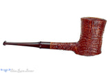 Beautifully sandblasted to reveal the growth rings inherent to the finest specimens of briar, this nicely oriented Eastwood poker from Nate King will sit, though the bottom of the bowl is rounded. Finished at the rim with a smooth and polished bevel while fitted with a classic cumberland brindle stem, this American handmade features a minimal and elegant crown saddle. The chamber is quite deep and narrow enough to host a straight Virginia, though like all of Nate's pipes this smoker is drilled so well that any favorite blend will do well here.