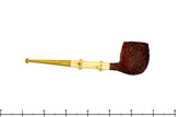 Don't let the pencil thin, bamboo shank fool you - this is a deceptively sturdy pipe. Nate's use of clean and polished bamboo is an inspired choice for this interpretation of the classic shape. The bottom of the bowl dips just beneath the shank line giving the impression of ripe, or swollen proportions which work with the wavy lines of bamboo from the swell of the knuckles. Maybe most impressive is the stem is attached about 3/8 of an inch from the bamboo in a seamless and continuous taper of ebonite. Like all of Nate's work, the details here are many and flawless in their execution.