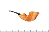 Nate failed to tell us why this gorgeous block of briar needed two stems, but he made both, and they are military mounts. One is made of traditional ebonite brindle with a small crown, the other, black with just a simple taper. Most striking is the finish of the pipe. Pale and natural with a few tones of rose in the yellow golden patina. A close second might be the once every few thousand blocks grain of straight oriented and dense striations that only show up very rarely. Reinforced with a brass ring around the mortise, this heirloom piece is a masterful union of nature and artist, representing the very finest in smoking implements.