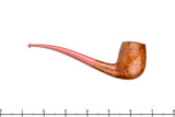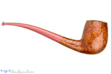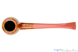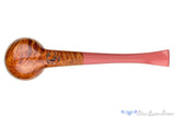 Nate King once again demonstrates that his fondness for non-traditional colors is not a random choice, but a method to our kind of madness. The soft pastel shade of the ebonite stem serves as a nudge to bring out the blush of the contrasting briar's smooth finish. Naturally decorated with radial birdseye, this sexy billiard is all curve, from fishtail to the subtle taper, and even the rounded rim of the bowl. Perfect for any virginia, this very lightweight and modest sized beauty will find a permanent home with a smoker who needs no behemoth cluttering up his experience.