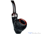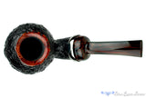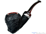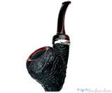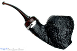 Super sleek with a rising swell of briar around the bowl, this titanium adorned and smooth rimmed blast has an additional sway of color with an old school brindle ebonite stem. The dark and dreamy finish of particularly gnarly wood is further contrasted by a smooth inner rim bevelled into the chamber and the wide girth of the shank keeps this solid standing soldier seem ready for action. Superbly crafted to be an even better smoker than a display piece, this Nate King is as original as we've come to expect from one of America's greatest professional talents.