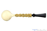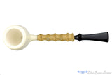 While many who have delved into the world of meerschaum to only find poor fittings and badly constructed implements of tight drawing frustration, it is not an overstatement to say that a well constructed meer is a rare find. Nate has managed to get his hands on a pure block meerschaum and fashioned it to a remarkable piece of six knuckled bamboo to create what is likely to be the best smoking device ever created. Given his demand and commitment to exacting engineering and perfect drawing designs, it was perhaps inevitable that he would eventually find a piece of raw block to work with. Clearly, the results are stunning. Whether for special occasions, fancy duds, or simply in the pursuit of the perfect smoke, this is a fantastic tuxedo of a pipe.