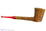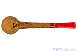 Resplendent and extraordinary, this well finished dublin from Nate King is a poker for the ages. While there is no denying the captivating growth rings, beguilingly stacked around the briar's bowl, this delicately tapered masterpiece of balanced and measured pulchritudinous (look that up in your Funk and Wagnall) proportion aspires to even greater heights of heartbreaking beauty with a finely articulated crown saddle stem of semi-translucent vermillion bakelite. An exceptional specimen of briar was needed to execute this equally exceptionally engineered smoker with such stupendous results. A truly rare combination of rugged character with very clean lines, this sitter will always be a compelling inspiration to smoke a great tobacco equal to such an impressive vessel.