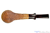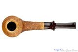 Keeping a sharp eye on the classic shapes of the past and a keen hand on ever new and innovative proportions, Nate has sculpted this rhodesian into a handmade briar that is both familiar and new. Hi focus on the bowl specifically was so clear he himself called the shape an oval shanked bulldog. Whatever your shape naming sensibilities, this tan blasted beauty has both poise and balance packaged into a briar of flowing lines and echoing curves from the front of the single beaded bowl all the way through the sculpted saddle of the cumberland stem. Finished only in oil and wax and deeply blasted to reveal straight grain patterns and rings, the only way to appreciate this beautiful handmade more is to simply smoke it and enjoy the hand tuned engineering that never fails to make Nate's pipes amazing smokers.