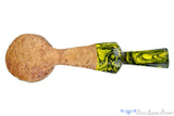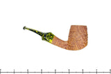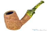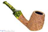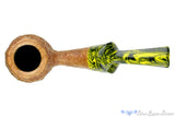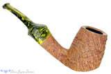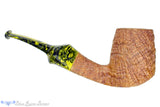 With a nod to Lovecraftian lore, Nate has incorporated a fitting and fantastically weird, limited edition stem hand cut from Eldritch rod, a resin similar to bakelite, into this geometric egg handmade. It's as if the stem is coursing with otherworldly energy captured forever in the mouthpiece of this ring blasted and pale briar smoker. Stare too long and it seems as if the miasma begins to swirl all on its own. Smooth at the rim and despite the inevitable praise of smoking and non-smoking passer by, this lightweight and billiard bowled bent briar has plenty of impressive rings revealed in the sandblast finish to be an heirloom, though it may take a whole lifetime to get over how well this smooth drawing smoker gives every session the pleasant satisfaction that comes from only the best handmade pipes.