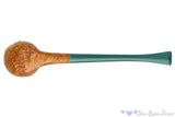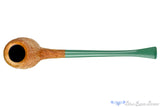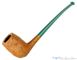Stemmed with jaguar green ebonite, this lengthy and lean, tall Smitty's billiard from American pipe maker, Nate King, is light enough to clench and tall enough to enjoy for hours at a time. The blonde finish will get richer as opposed to dirtier looking with use as a benefit of Nate's proprietary design and the smooth inner rim has just enough bevel to keep from being burned with careful lighting. Perhaps best of all is this blonde bombshell's deep chamber of sweet-spot width that will make the long session of savoring the smoke a perfect pastime with any favorite blend.