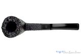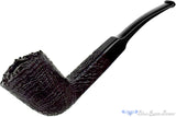Large, black blasted, and massively chambered with a conical design, this English-made Ben Wade freehand estate pipe features a square shank for a sturdy sitter and a rim replete with plateau from the outer edge of the briar. Straight grain and growth rings are both on full display and the matching square saddle balances the massive bowl without adding too much weight to the already hefty smoker. In excellent condition, this nicely drilled and smooth, open drawing hours long smoker will likely require a tongue friendly blend and a comfortable place to sit.