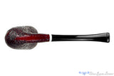 The deep bend, sinewy transition, and slim tapered stem are deceptive in hiding the large chamber in this Brebbia Junior UNSMOKED estate pipe from Italy. Adorned with a simple white band of acrylic and light enough to practically disappear when being clenched, this dublin smoker does have some beautifully blasted details in the finish and features a conical chamber that begs for a favorite complex blend of English or Balkan, though a burley based aromatic would do well here too.