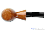Made for Buckeye pipes by an American pipemaker, this completely UNSMOKED freehand estate pipes has the right side of the bowl decorated with a design of spot carving, likely to remove some softer wood. The grain is impressive and the smooth finish highlights a great deal of tightly packed birdseye. Stemmed with acrylic that will never oxidize, this sitter, which is also unstamped, has a wide and very deep chamber, perfect for long sessions of broad cut leaf. Note that this pipe comes with its original sleeve.