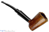 Tall and wide in the chamber, this Charatan Distinction estate pipe features a long and flared ebonite ferrule with the Crown Model etched and painted into the side as well as the famous double comfort saddle stem. The polished sides of the bowl give plenty of room to display the natural contrast of straight grain and the rim has been carved into a rusticated texture like the outer burl's plateau. Note the vast wideness of the chamber making this a perfect vessel for slow sippers who wish to interrogate their tobaccos with a large ember, this English smoker is still in outstanding condition though the ferrule's nomenclature is worn.