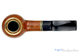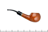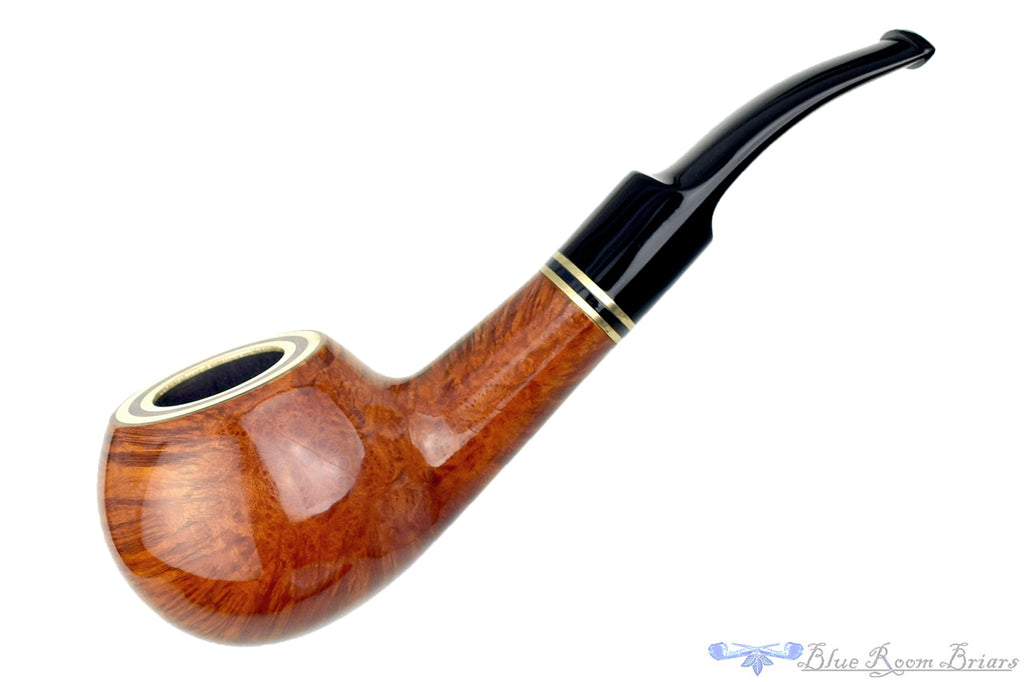 Well grained with oodles of profile peeking end-grain birdseye gracing the whole of the stummel, this smooth and honey hued estate pipe from Design Berlin's Mariner offerings is further adorned with the use of a double brass band at the end of the shank and a compelling double brass insert into the rim. The result is a little extra bling with stunning effect. All the metal in the rim does add to the heft of this solid piece, though even without it the very thick walls of the chamber and shank would quickly add up. An excellent draw and a wide chamber round out this sturdy German puffer which is in phenomenally good condition despite having been smoked.