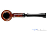 Finished smooth and all curves in the bowl, like a good Danish pipe should be, this Don Regular estate pipe, from Bari, has a thick wall and a matching chamber to the outer shape, steeply coned to the bottom draft hole. An excellent choice for enjoying topped tobacco like a favorite aromatic or any burley based blend, this fancy stemmed and bent smoker is a comfort to clench, though at over six inches, even with the bend we suggest taking a break from the jaw every few minutes to avoid being sore.