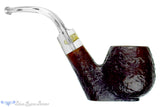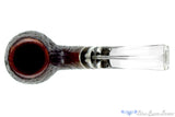 Very wide in the chamber without being ridiculously massive, this sturdy sitter GBD Collector bent apple even has a pedestal along the bottom to ensure it won't fall over while still lit. Stemmed with an early Perspex crystal clear saddle, this Prehistoric finished apple estate pipe also carries a smooth rim and bevel into the wide chamber. There are some minor patches of darkening along the rim and there are a few very minor handling marks, but this English sitter is in outstanding condition.