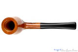 Completely UNSMOKED and perfectly drilled, this Jack Weinberger billiard sitter estate pipe has been waiting for many decades to be a favorite smoker in a lucky collection. The finish is obviously smooth with a tall bowl and a very deep chamber in addition to a spot carving on the right side covering the shank, transition, and bottom of the bowl. The chamber is cylindrical and the draft hole is dead on at the very bottom for a smoker that minimizes dottle and provides a consistent draw from start to finish for this American handmade.