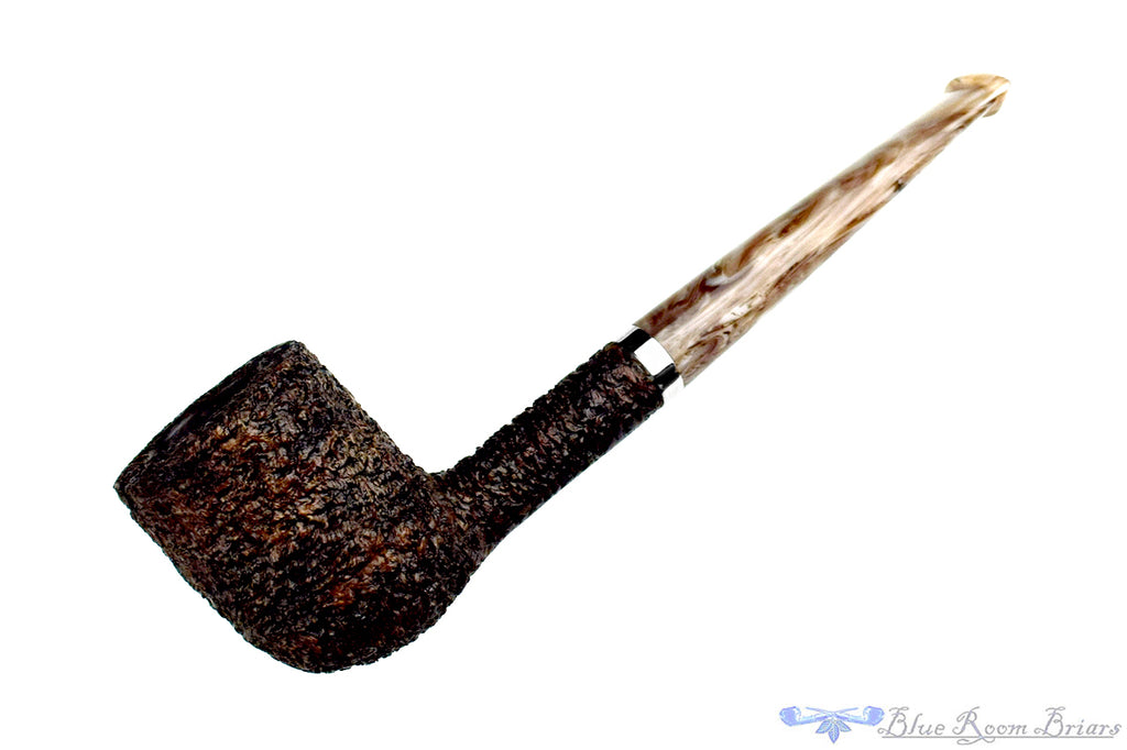 South African pipemaker, Jan Pietenpauw gave this simple billiard shape a striking finish of contrasted rustication. Banded with nickel and fitted with a gorgeous colored acrylic stem, this lightweight and narrow chambered estate pipe is completely UNSMOKED. Just the right size for straight Virginias and Virginia/Perique blends, this classic shaped smoker has a cylindrical chamber and an excellent draw for a sure thing that belongs in every proud smoker's collection.
