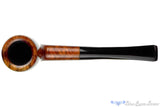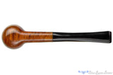 Made in Denmark with a classic billiard bowl and a round, steeply tapered shank and stem, this Jørgensen Gold estate pipe is finished smooth in a high-contrast display of cross-grain and birdseye. There are some patches of darkening across the beveled and broad rim and the chamber of this Danish sitter is both deep and wide enough to support the enjoyment of a complex flavored English or Balkan blend. There are also a few minor handling marks but this lightweight clencher is well drilled, in outstanding condition, and draws exceptionally smooth and open.