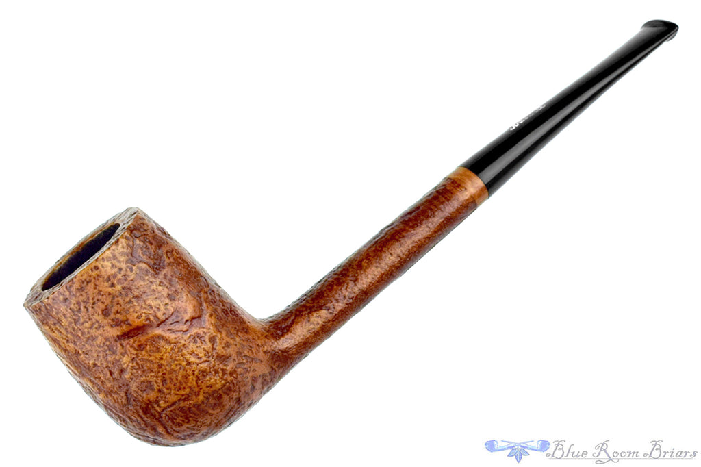 A long and oval shank is tapered through the stem of this Danish-made Kriswill Chief estate pipe resulting in a lengthy smoker with a slim and elegant profile. The sandblast finish does have some contrast that makes the lighter tone appealing and the large bowl carries a substantially sized chamber of a conical shape. Easily wide enough to house an English or Balkan blend, this Chief will also do well with any broad cut leaf or burley given its smooth and welcoming draw. In excellent condition with just a touch of modest ware on the stem's painted logo.