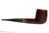 Well shaped with a plump bowl and a gnarly blistered finish of carved rustication, this handmade Mastro de Paja Pesaro estate pipe is left with a smooth and polished rim above a wide and deep chamber. The pipe has only been lightly smoked but there is some modest rim darkening. Otherwise in outstanding condition, this Italian and tapered beauty has a particularly smooth draw and plenty of room in the cylindrical chamber for a flavorful and consistent draw with any favorite broad cut leaf. Note that this pipe comes with its original sleeve.