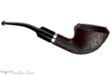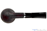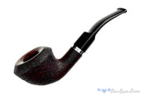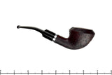 In excellent condition with a smooth, polished, and broad rim, this wide bowled and sandblasted bent rhodesian estate pipe from Italian maker, Molina, has a saddle stem to keep the weight to a manageable girth and a nickel band for balance adornment. Conical with a rounded bottom and drilled with a smooth open draw, this dark and bent smoker has an acrylic stem that will never oxidize.
