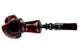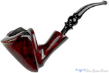 Large with a palm filling profile, this Nørding freehand estate pipe from Denmark has an impressive smooth finish with a high polish. Flame grain wraps all the way around the large bowl and the resulting birdseye on both the plateau kissed rim and the top of the shank is on full display. There is some slight rim darkening toward the back of this magnificently large and cylindrically drilled chamber's rim, but this redheaded beauty is in excellent condition with an equally compelling draw.