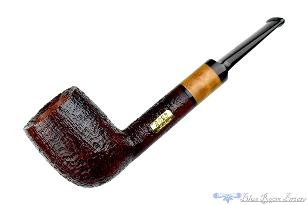 A large briar insert along the long saddle and a gorgeous burgundy sandblast finish dress this completely UNSMOKED Savinelli billiard estate pipe from the 2023 collection. The wide and deep chamber has plenty of room for a favorite English, Balkan, Lakeland or any complex blend friendly to the smoker's tongue and the acrylic saddled stem helps keep the weight down for long sessions of clenching. Fitted with room for a 6mm filter, this Italian briar does not come with an adapter but will be a great smoker either way.