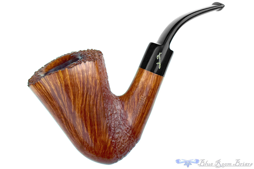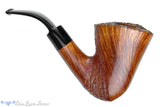 Handmade in Italy from the generationally trained pipe carvers at Savinelli, this Autograph estate pipe is both smooth and rusticated with a strip of carving along the back of the bowl that bisects the shank. Deeply bent with a truly massive bowl and chamber, this wide and plateau rimmed beauty is far too heavy to be a clencher, though still comfortable between the teeth for a short time. There is some darkening along inner rim, just outside the smooth and polished bevel, but this breathtaking display of size and naturally contrasting grain is still in excellent condition with so much room in the chamber even a fast paced puffer will be satiated for hours at a time. There is room for a 6mm filter in the wide tenon, though not necessary for a great smoke.