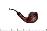 An extravagantly detailed ring blast graces the surface of this large bowled Stanwell Nordic estate pipe with a tonal contrast of deep browns and rich, rusty reds. The large and thick walled bowl is balanced against a small saddle and a band of brass, but this Danish-made redhead is bent enough to keep it a comfortable clencher. The cylindrical chamber is wide and deep for long sessions of a tongue friendly blend from any genre. In excellent condition with a fantastic draw to support such a capacious chamber.