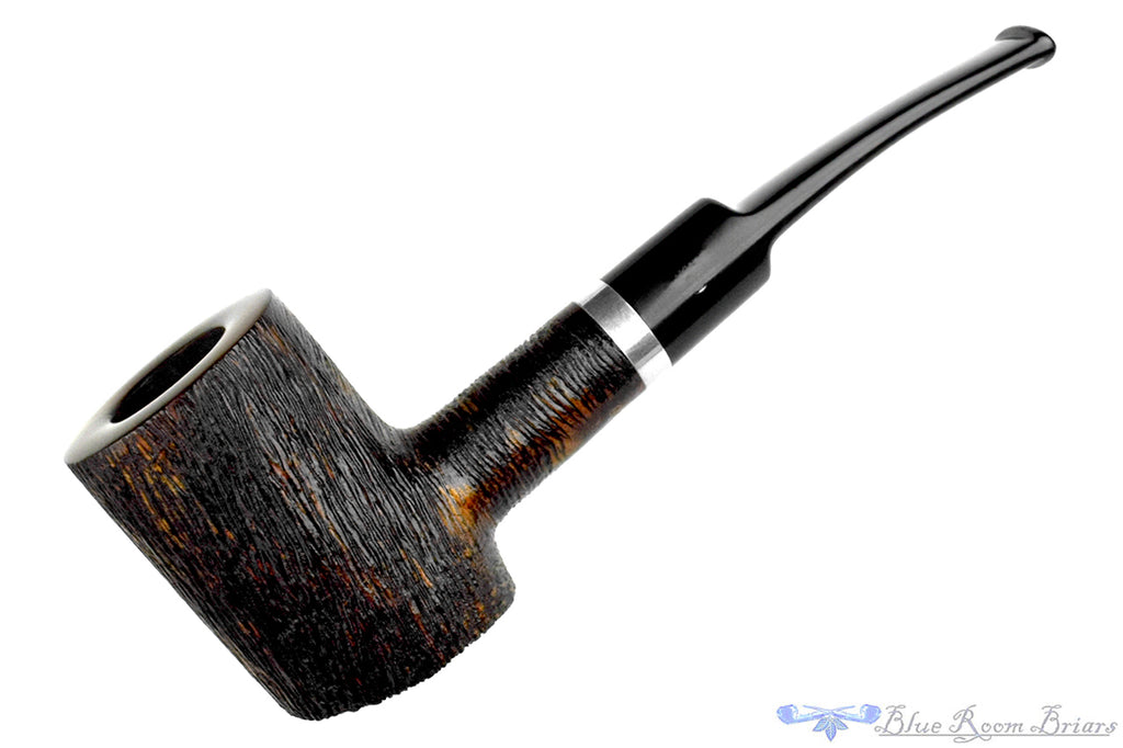 Made in the Italian factory after moving production from Denmark, this Danish Design designated Stanwell Relief poker estate pipe features a brush carve finish and a wide tenon for 9mm filters. There is a simple band of nickel and a slightly bent saddled stem to keep the weight down, but this thick walled poker sitter is likely a bit too much to keep clenched throughout the smoke. The cylindrical chamber is easily wide enough to accommodate a complex English or Balkan blend though this acrylic stemmed handful draws smooth enough that anything friendly to the tongue will do well here. Note that this pipe comes complete with its original sleeve.