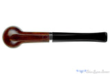 This example is a classic billiard with a perfectly aligned grain pattern flowing from stern to bow, perfect for an active smoker or someone who likes to clench. Made in the days when Tom was perfecting his golden contrast finish, this one has a slim silver band separating the smooth and curvy billiard bowl perched precisely on meticulously tapered shank that runs seamlessly onto the black ebonite stem. This pipe is poised to be the understated, but technically marvelous jewel of your collection. A bit of very mild chamber and button wear, but this pipe is ready for years and years of faithful service.