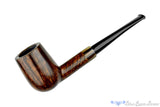 This straight grained and handmade billiard from French carver, Bruno Nuttens, is covered in a dark contrast warmed by a natural horn ferrule. The taper, neither sweeping or convex, is just right in its meeting at a thin bite just behind the button. Perfectly drilled to the very bottom of the sweet spot sized and cylindrically designed chamber, this beautiful briar is highly recommended for sampling all kinds of tobacco as it can be both easily clenched, proudly shown off, and smoked with abandon.