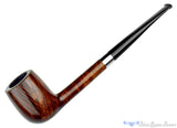 Finished smooth and densely grained in a bit of natural contrast, this tastefully long bing billiard from Bruno Nuttens is more than just a canvas for briar's beauty. Punctuated with a wide band of nickel that draws the eye to conclude even more length, this finely tapered smoker draws like a dream and has a chamber just large enough to keep a strong English friendly with flavor or a burley mild and dry to the very bottom of the bowl.