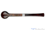 Smooth and deliciously grained with birdseye framed across both sides of the billiard bowl, this bing billiard from French carver, Bruno Nuttens of Nuttens PIpes, features the famous elegant design with a band of nickel and a classic cumberland brindle stem. Refined and engineered to be a fantastic smoker, this well put together and lengthy smoker does have a bowl coat and is ready to begin its generations long journey of satisfying smokes as soon as it arrives.