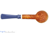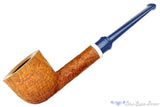 Blonde and lovely, this tan ring blasted beauty has a ring of white juma and a catching blue ebonite stem. Topped with a smooth rim and a wonderfully sculpted bevel that looks as if a ripple is spreading from the chamber itself. Very lightweight and easily clenched for hours at a time, this pot will turn heads wherever it goes, but more importantly will be reached for again and again for generations of excellent smoking.