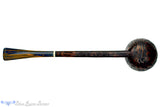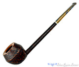 While not as lengthy as others in Scottie's repertoire, this "Scottie" contrast blast modern rhodesian is still a very long pipe. Left smooth at the concave rim and adorned with ivorite at the stem's transition, this eye popping contrast blast finished smoker has a sweet spot sized chamber that will do well with any favorite tobacco. Reinforced with steel tubing to be even stronger than a standard briar pipe, this beauty is punctuated with abrindles stem of dark blue and sunset yellow.