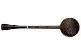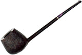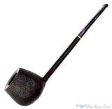 The dark finish of this large and apple bowled Scottie pipe is a rich dark chocolate that looks nothing short of decadent against the smooth and polished rim treatment. Stemmed with ebonite brindle of black, purple, and a subtle strip of red, this magnificent and lengthy smoker from Scottie Piersel does have a bit of physical and visual heft in the bowl and likely won't make a clencher for any length of time. The chamber however is large enough to get a fold and stuffed flake to reveal all its flavorful secrets and the superb engineering makes a wonderfully smooth and open draw that will support any blend where a larger ember is desired.