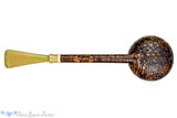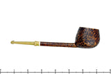 Big, thick, and curvy in the bowl, this slim shanked and dynamic finished sandblast beauty carries the name of American pipe maker and Our Lady of Briar, Scottie Piersel. Based on the clay pipe proportions of many generations past, this lean smoker is reinforced in the long, thin shank, making it much stronger than your average briar pipe. Left smooth across the wide and slightly beveled rim, this sweet spot sized chambered smoker has a simple adornment of ivorite and a wild colored stem of ebonite, single swirl brindle of toasted mustard and green. In fact, as with much of Scottie's high contrast blasts, there are tones from wheat and honey all the way to rich chocolates and rusty reds all along the stummel, depending on how much light the pipe is exposed to. Unique and gorgeous, this perfect drawing vessel will always be a looker, but once lit it will smoke so well, it just won't matter.