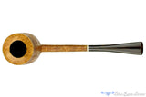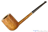 Finished in a tight blast with a honeyed tan, this "Scottie" pipe from Our Lady of Briar, Scottie Piersel, is a true tan blast with a mesmerizing smooth rim filled with tight birdseye and a natural contrast. Fitted with a dark brown and burgundy brindle stem, this comfortable clencher is a joy to keep between the teeth and offers a cylindrical chamber is a sweet spot size that is versatile enough to be appropriate to enjoy with any genre of favorite tobacco.