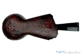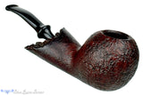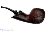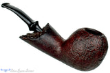 Big, bold, and unapologetically made with some man sized heft, this reverse tapered shank and large chambered apple from RC Sands is a striking and well engineered smoker. Covered in dense plateau at the shank's facing, this military mount stemmed beast is so thick wherever and whenever being held, it may be difficult to know its lit, save the sweet dry smoke pouring out of both ends. Delightfully textured and like all of Chuck's pipes, very open and smooth in the draw, this bowl coated beauty is a pleasure to hold in the hand.