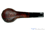 Richly finished in a staggeringly tight set of some 40 plus growth rings, this bent blast egg from RC Sands isn't pretty. It isn't smooth, nor is it elegant. It is a no nonsense smoking workhorse, decorated by nature and brought forth by Chuck to be comfortable to hold, effortless to smoke, and a champion for those who wish to smoke the finest quality briar at an extremely reasonable price. Our recommended choice of tobacco for this well engineered puffer is virginia, but anything will do well. Note that this RC Sands pipe does come with a bowl coat, but if you prefer we are happy to remove it before shipping.