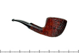 With a mighty and capacious chamber, this hand held implement of personal satisfaction is a clydesdale of workhorse smokers. With so much briar surrounding the bowl, there will always be a comforting cool draw no matter how fast you can smoke. The real show here however, is the phenomenal sandblast. Row after row of tight rings sectioned together by dominant straight grain; as if a spider's web was the inspiration. Deeply finished in rusty auburn tones, this palm sized puffer will be a prized piece for generations of constant use.