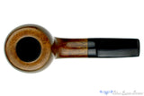 Danish inspired, but undeniably all American, this swooped apple from RC Sands is a prize of thick walls and dense grain. Finished in a naturally contrasting deep chestnut hue, this marvelously palm friendly workhorse of comfortable briar has an enormously wide chamber for getting the most out of larger cuts and balkan blends. Well proportioned, especially for larger hands, and including a wide open draw, this sizeable smoker is a celebration of the purist's soul - It's ok to look good while taking the smoking experience seriously.