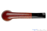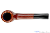 Nicely curved and showing both a sinewy feel with a muscular disposition, this thick walled RC Sands is well oriented to the block and shows off a fair amount of densely packed straight grain in natural contrast wrapped all the way around the stummel. The black acrylic stem is short and tapered but with just enough bend to offset the curves of the shank. Rounded at the rim to minimize any darkening with use, this beautiful handmade briar has a very wide chamber suitable for enjoying larger cut blends as well as natural flavors from Balkans, English, and Lakelands.