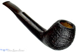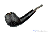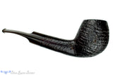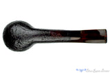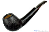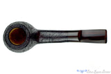 While it may look completely black, this detailed and distinct sandblast finished bent egg from RC Sands is a shade or two on the red side. Take this un-bowl coated beauty out into the sunshine and the very dark red is apparent. Saddled with an acrylic stem of brindle design, this smooth drawing smoker is drilled with a draft hole as dead center at the bottom of the conical chamber as is possible. Not only will it easily pass a cleaner but this growth ring decorated briar will be a joy for staying lit until the last bit of leaf has been turned into flavorful smoke.